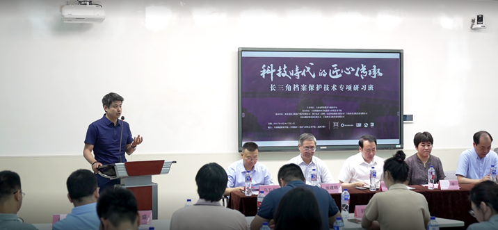 陈晓俊在开班仪式上表示,在科技迅速发展的今天,作为档案保护工作者,既应严谨求实做好档案基础工作,也须与时俱进推动档案保护行业创新发展。他在发言中探讨了AI赋能档案保护的伦理风险、防范对策和工作路径,并表示希望凝聚与会专家的智慧力量,共同探索融合发展新范式。陈晓俊分享了档案与文物保护技术中心的建设思路和成功经验,后续课程培训中,他将就“多类型档案仿制策略及案例分享”与“档案保护业务设置与专业储备”进行授课。李仲谋作题为“从文物保护看档案保护“的报告,让档案保护人员能更清晰地了解文物保护行业的模式体系与特点,也从不同角度审视档案保护行业。