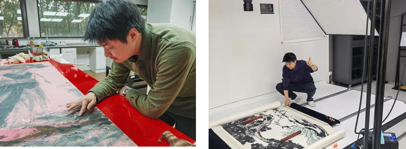 文物保护实验室建设及文物检测与修复专家刘存良介绍纸质文物常见病害和常用检测手段,并指导学员们进行现场实操。人工智能与高保真技术采集领域专家张承与陈晓俊共同阐释了如何通过人工智能与底层算法将数字技术运用到档案数据采集与编辑工作中,为专业人员开拓了视野。环境净化与空气控制领域专家林金建从国家相关标准入手,介绍了档案保存环境的防治规范与要求,并针对空气运作原理与监测难点做了详细解析。上海市非遗项目代表性传承人王采琦与纸质档案修复专家孟晔采取理论讲解和实操演练的方式介绍了中国传统书画、古籍等装裱制式的难点与实用技巧。
